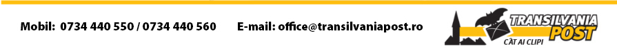 Transilvania Post garantează seriozitate şi rapiditate, livrare în cel mai scurt timp şi program prelungit de preluare a comenzilor.